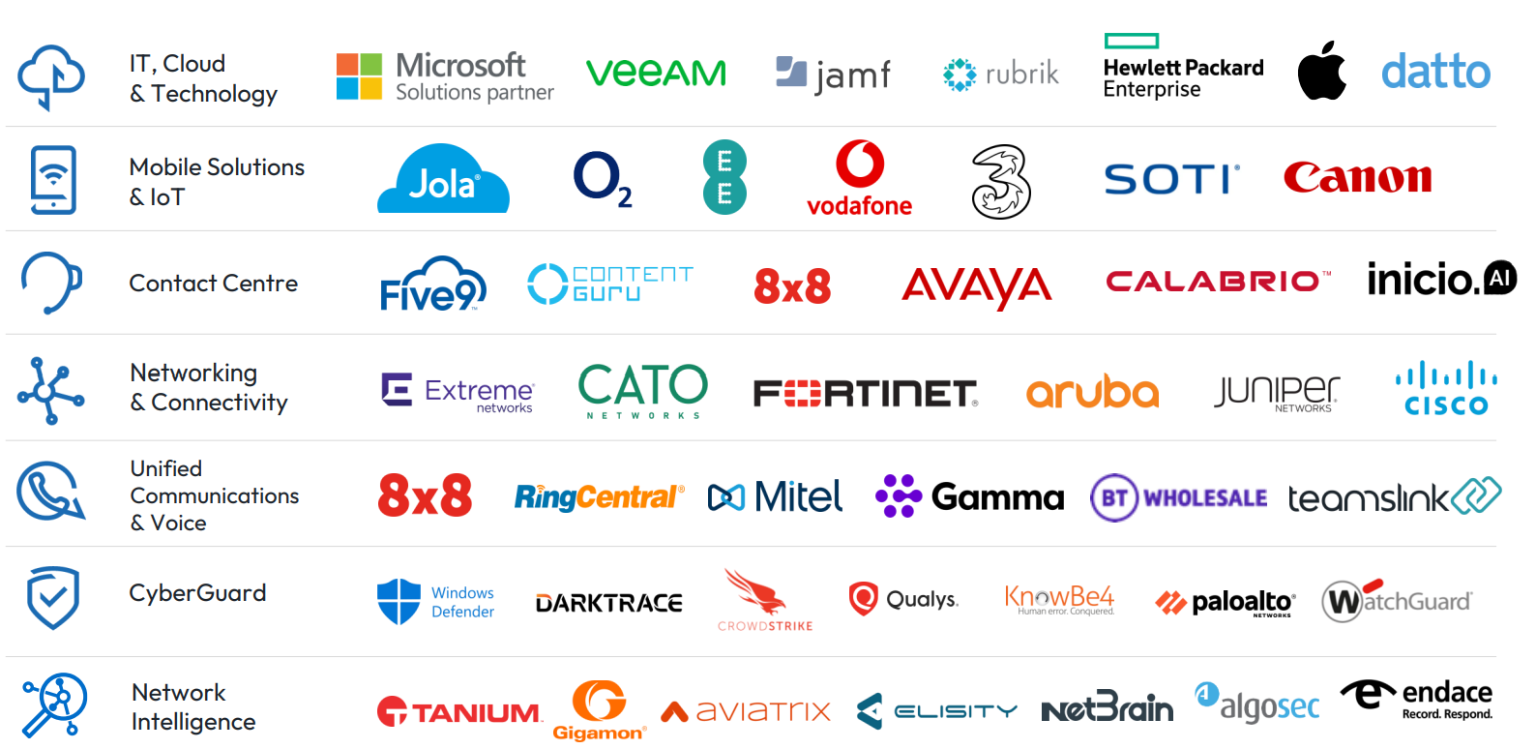 We hold preferential relationships and top-tier accreditations with the UK’s major mobile networks (O2, Vodafone, EE) as well as leading cloud and security vendors. Recent recognition includes Cloudflare EMEA New Partner of the Year (2024), Cisco EMEA Partner of the Year – API & Innovation, and multiple Gamma Awards (2025).